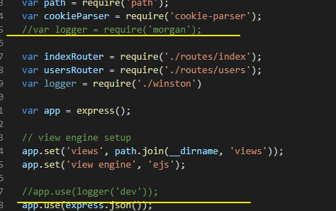 var logger = require('./winston'); <-- 파일 위치에 맞게 인클루드해주고