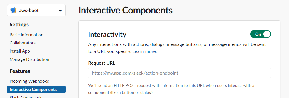 슬랙 커맨드에 의한 응답을 받기 위한 URL 설정