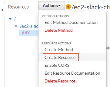 아래 그림처럼 Action 버튼을 눌러서 "Create Resource" 를 클릭한다.