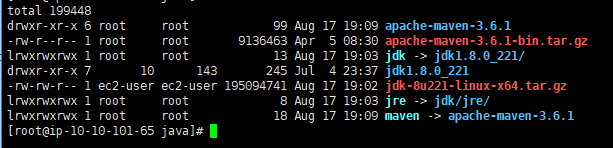 # ln -s apache-maven-3.6.1 maven