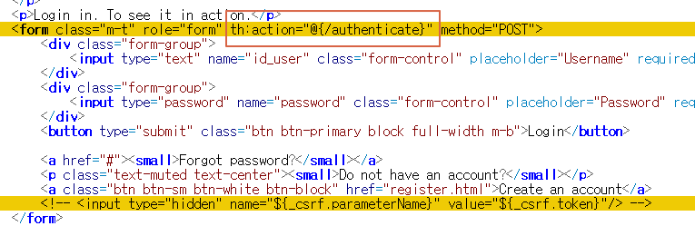 로그인 폼 페이지도 기존에 hidden 으로 해준거 주석하고 th:action 코드로 변경