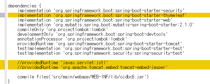 기존 JSP 설정 삭제하고 thymeleaf 설정
