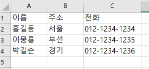 우선 DB 에 해당하는 엑셀을 이렇게 준비하자