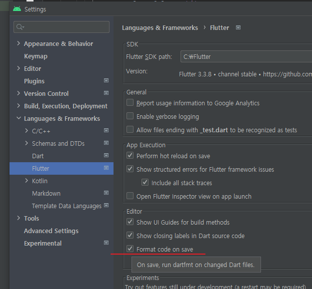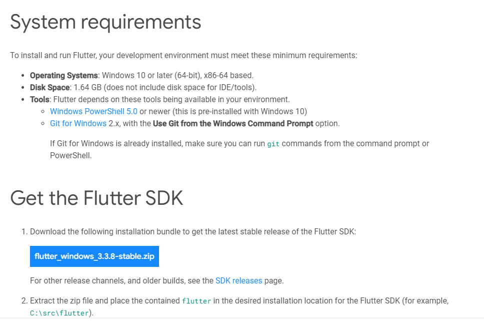 플러터 설치 경로에 특수기호가 없어야 한다고 함. 그래서 난 C:\Flutter 에 설치 진행