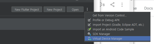영상 속에는 "AVD Manager" 란게 있는데 아무래도 아이콘으로 유추해볼때 "Virtual Device Manager" 인것 같다.