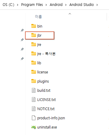 그리고 안드로이드 스튜디오 적합한 자바 번들을 못찾는다는 에러가 있는데 이것은